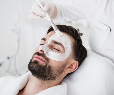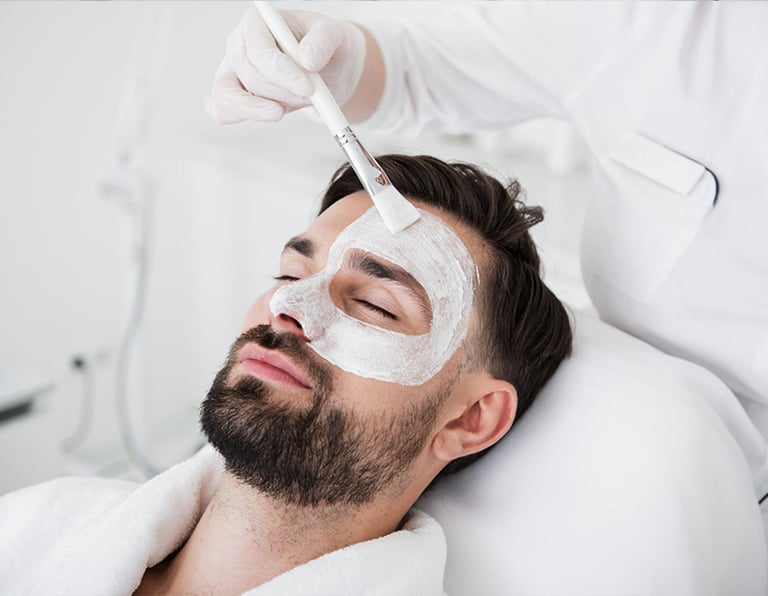 Professional facials using branded products to cleanse, exfoliate and brighten men’s skin tone.
